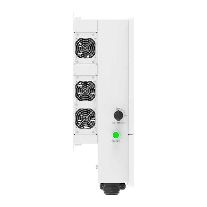 - Високий ККД пристрою, який становить 97.5%, зумовлює більш ефективне перетворення постійного струму в змінний, що позитивно впливає на виробіток станції. Це один з найвищих показників ККД для перетворювачі такого типу.