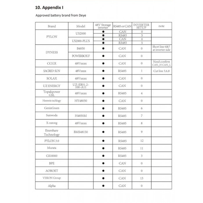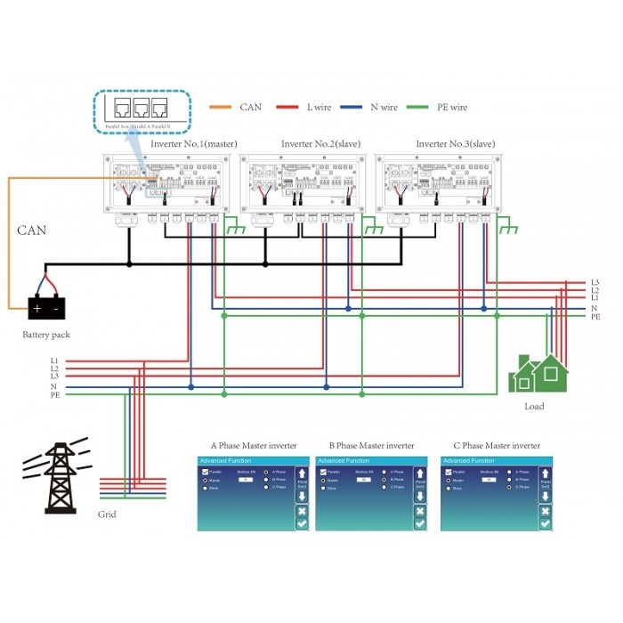 - Робота з літієвими акумуляторами по CAN, RS485 протоколу та на ручних налаштуваннях