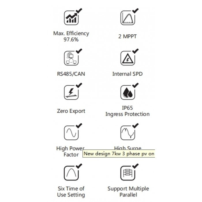 Більшість опцій підключення – ви можете підключити до 16 паралельних сонячних панелей як до мережі, так і в автономному режимі. Це дозволяє легко модернізувати вашу сонячну систему.