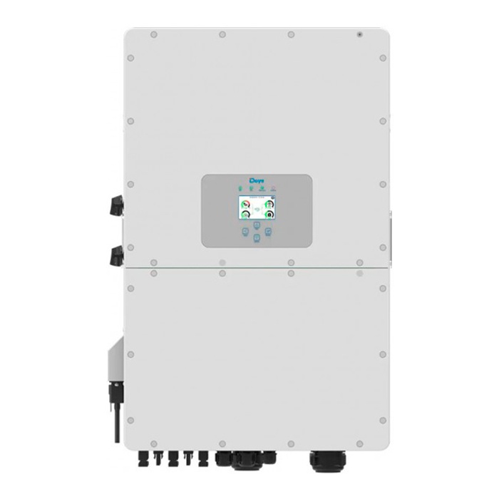 Deye SUN-50K-SG01HP3-EU-BM4 – сучасний трифазний гібридний інвертор має потужність 50000Вт, напругу акумуляторних батарей 160-800В, та зможе забезпечити надійну систему електроживлення. Підтримка трифазного струму надає можливість широкого застосування пристрою.