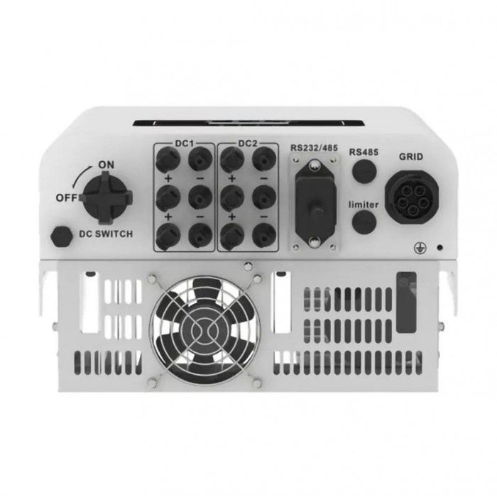 Deye SUN-50K-G04 - трифазний мережевий інвертор на 50 кВт з можливістю підключення сонячного масиву до 65 кВт. Інвертор підтримує паралельне з'єднання для розширення загальної системи. Модель має 4 MPPT трекера з максимальною напругою до 1100В і вхідним струмом до 40 А. Інвертор запускається від 250В, що дозволяє ефективно використовувати даний інвертор протягом усього світлового дня. Безтрансформаторна схема перетворення дозволила отримати високий ККД інвертора - 98.6%, що дозволяє максимально використовувати енергію із сонячних панелей.